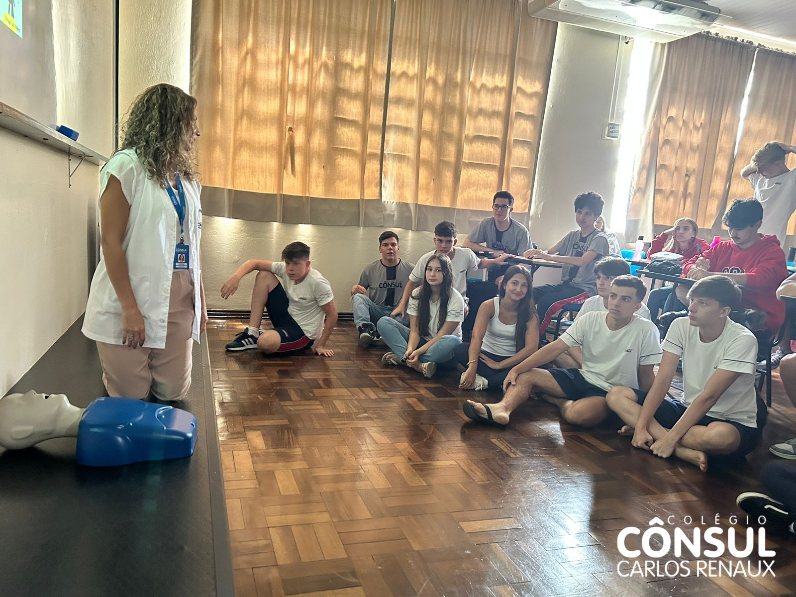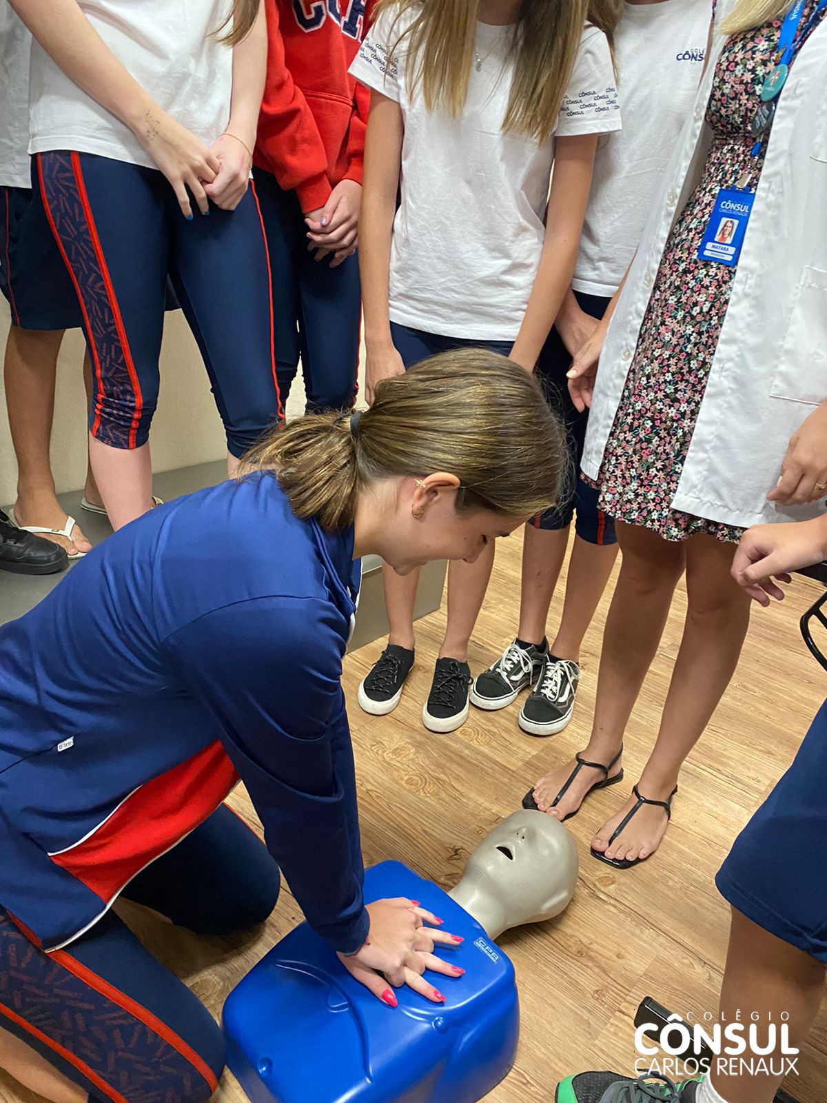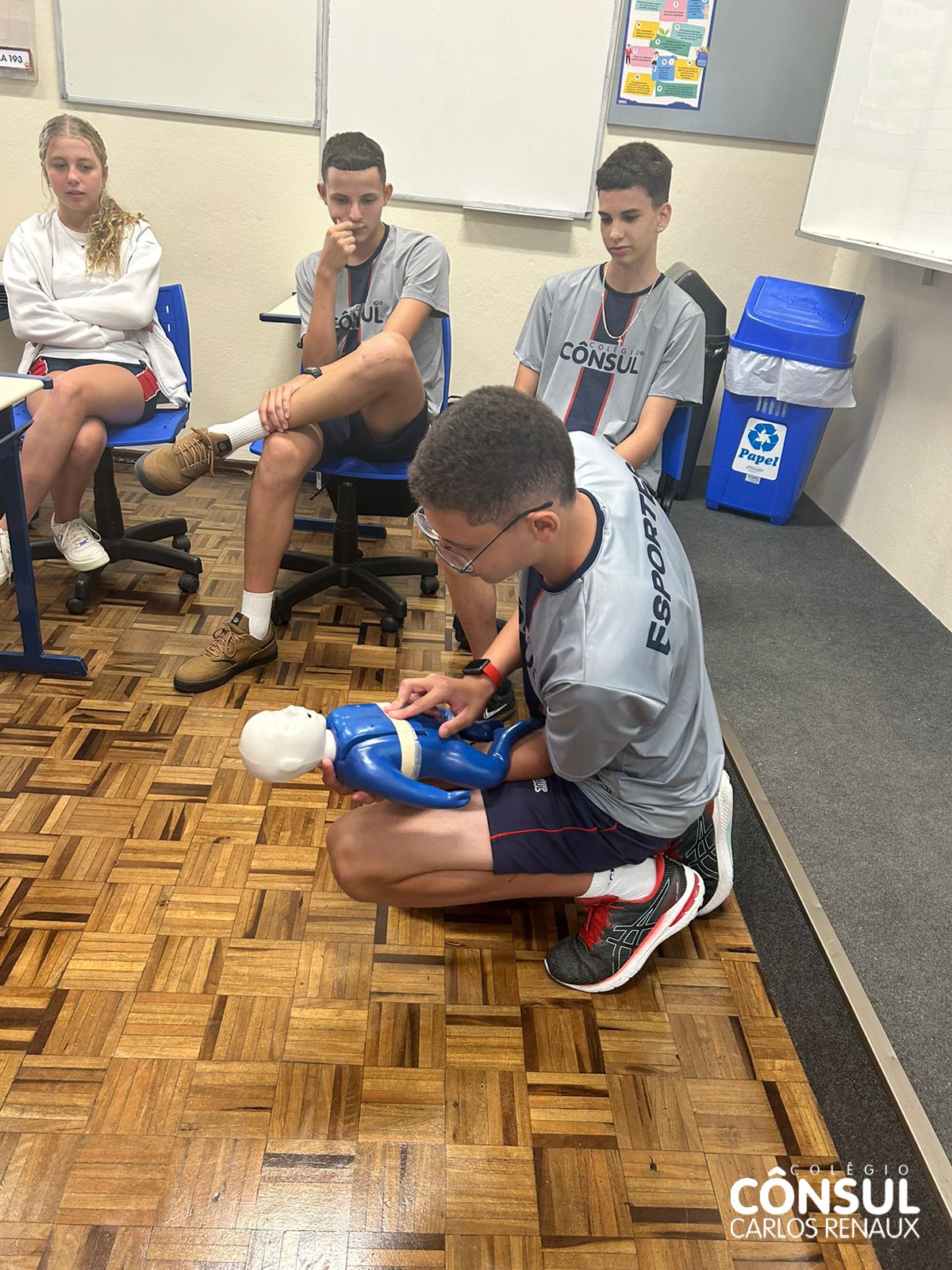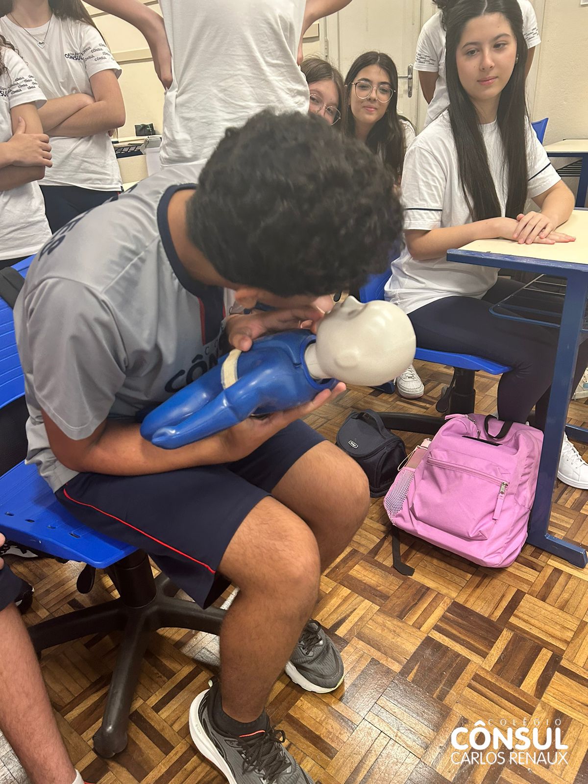 A iniciativa de oferecer o treinamento aos estudantes do 8º ano ao Terceirão partiu das professoras de Inglês, que integraram a parte prática com vocabulário e expressões em ambas as línguas. Compartilhando manobras em casos de engasgamento, abordando o passo a passo da manobra Heimlich, capacitando-os para lidar com situações de emergência.